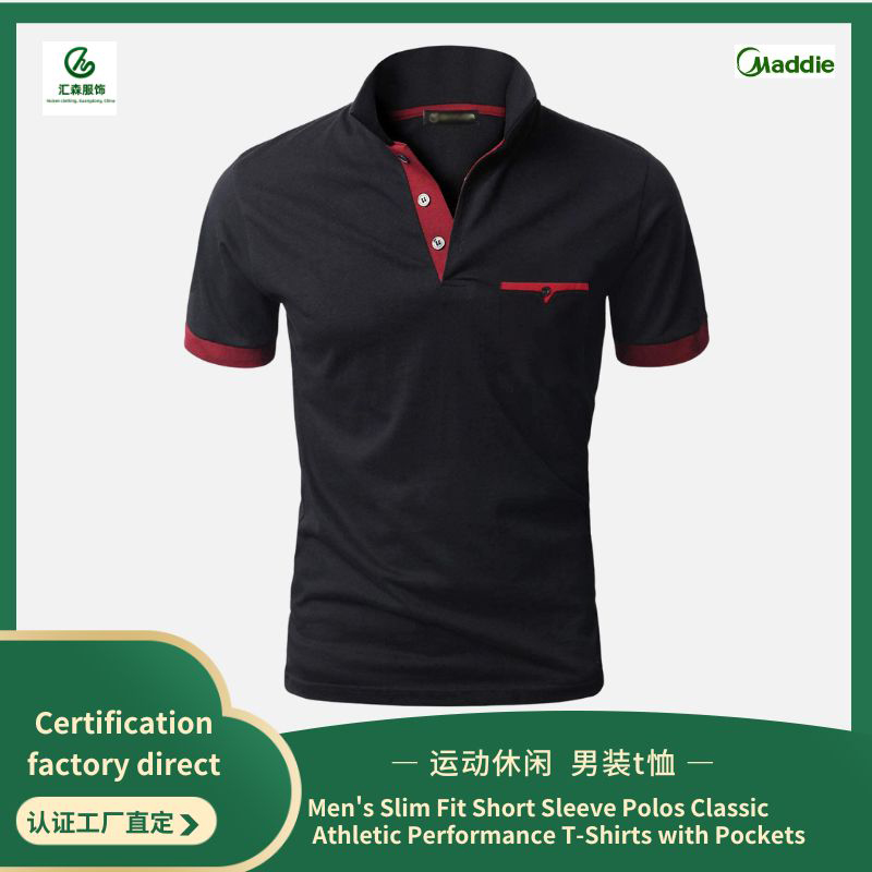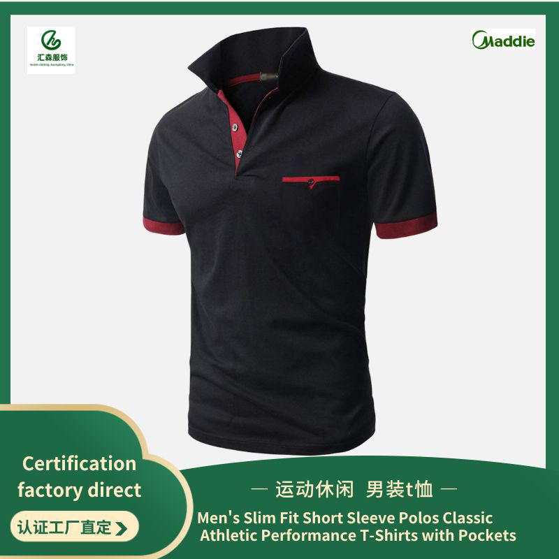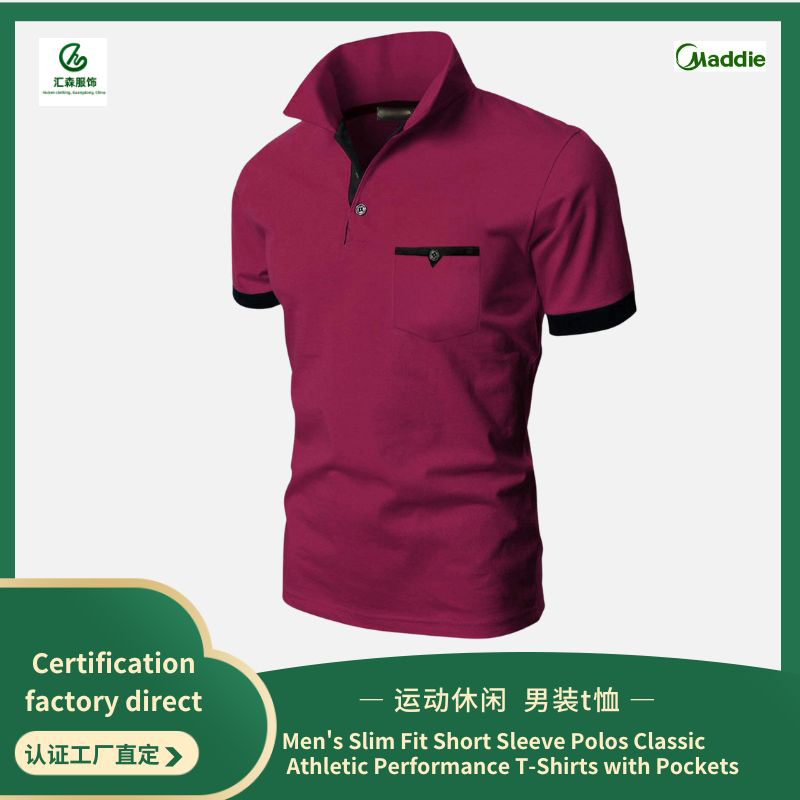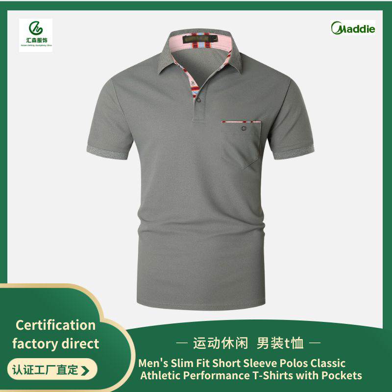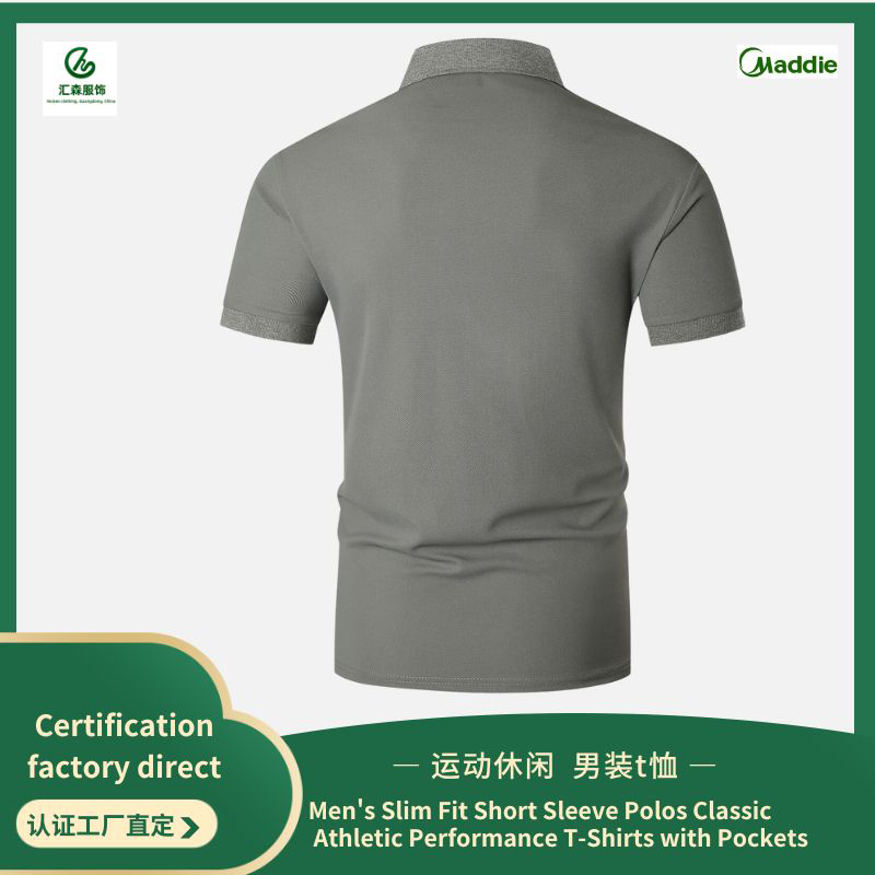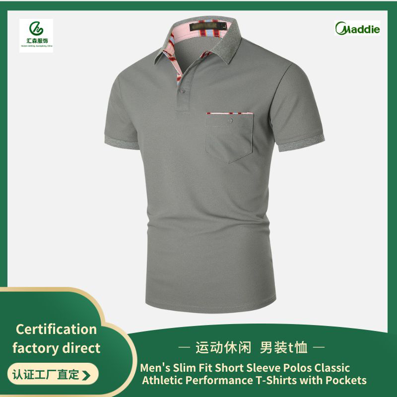 Men’s Slim Fit Short Sleeve Polos Classic Athletic Performance T-Shirts with Pockets